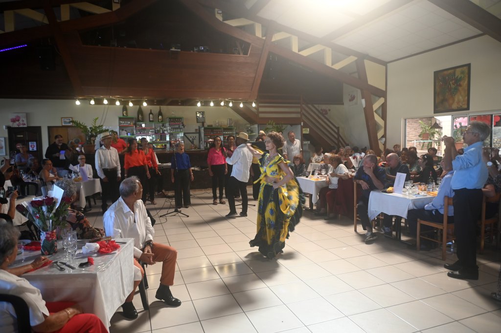 Après le service de l’entrée, pendant que tout le monde se régalait, un groupe du secteur ouest a présenté deux danses l’une pour le père, l’autre pour les mères. Ils ont été bien applaudis. Il fut suivi de deux couples qui ont épaté par l’originalité de leur prestation : un bachatango. Leur évolution a surpris tant par la chorégraphie que par leur tenue. Félicitations ! Pour conclure, la chorale des adhérents du sud a interprété trois chansons.